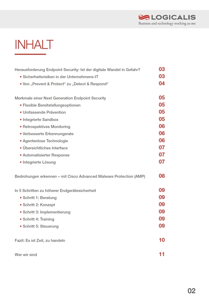 Logicalis ist Ihr zuverlässiger und erfahrener Begleiter auf dem Weg zu einer sicheren IT-Infrastruktur. Uns verbindet eine enge Partnerschaft mit unseren Security-Herstellern, wie zum Beispiel Cisco. Mit Hilfe unseres Ratgebers bekommen Sie einen guten Überblick über das Risiko von ungesicherten Endgeräten und erhalten wertvolle Impulse zum Schutz Ihres Unternehmens.