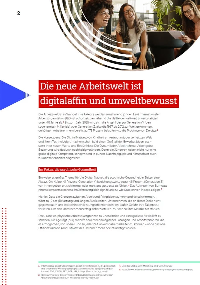 Die Arbeitswelt wird immer jünger, die Digital Natives sind auf dem Vormarsch. Mit ihnen: veränderte Erwartungen und Ansprüche. Digitale Arbeitsplätze sichern Ihre Attraktivität als Arbeitgeber.